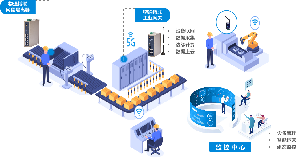 实现工厂传感器、电表、PLC控制器、工业机床、工业机器人等设备联网。
