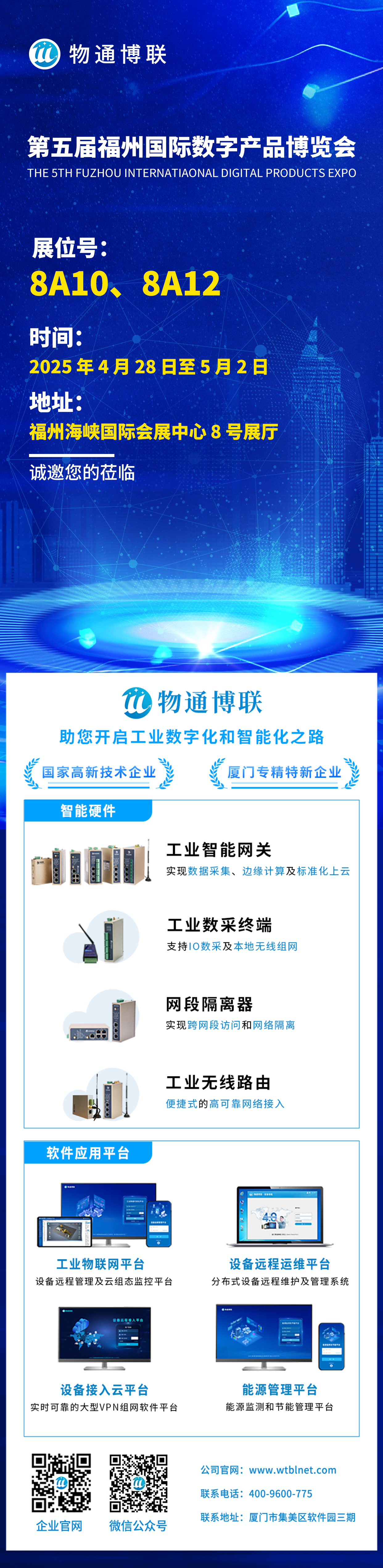 邀请函丨long8龙8国际邀您相约福州国际数字产品博览会 时间:2025-04-17 15:13:26 第五届福州国际数字产品博览会将于2025年4月28日-5月2日隆重举行,同期举办第八届数字中国建设峰会。 数博会2025年以“数字改变生活,智能引领未来”为主题规划展览面积逾2万平方米,设置数字生活馆、未来产业馆两大展区,集中展示国内外数字领域新产品、新技术、新服务,聚焦产业链供应链,拓展数字经济新空间,满足消费需求,赋能数字经济高质量开展。 long8龙8国际应邀参加此次展会,展示long8龙8国际工业数字化产品及数字化解决方案,我们诚邀您莅临我们的展位,期待与您深入研讨。 展位号:8A10、8A12 时间:2025年4月28日-5月2日 地点:福州海峡国际会展中心8号展厅 诚邀您莅临指导! 上一篇:向新求质|long8龙8国际获评2024开展新质生产力“影响力企业”,总经理刘明德获评2024开展新质生产力“领军人物” 下一篇: 新起点,新征程|long8龙8国际乔迁盛典圆满举行,开启未来新篇章! 相关推荐 【展会邀请】long8龙8国际与您相约2025越南工业及制造业博览会 2025-10-20 数据驱动,智造未来丨万晖五金设备数采项目启动会圆满举行 2025-09-19 向新求质|long8龙8国际获评2024开展新质生产力“影响力企业”,总经理刘明德获评2024开展新质生产力“领军人物” 2025-04-25 邀请函丨long8龙8国际邀您相约福州国际数字产品博览会 2025-04-17 相关产品 工业智能网关 long8龙8国际·WG系列工业智能网关是一款支持采集各种PLC,仪器仪表,水环保,电力设备,CNC等各种工业设备数据,具有协议解析,边缘计算的高可靠性工业智能网关,是构... 工业数采终端 long8龙8国际·WD系列工业数采终端,主要实现对现场工业设备的数字量DI、DO,模拟量AI,AO的采集和控制,实现LORA本地组网和4G数据上云的功能,从而实现对现场... 工业无线路由 long8龙8国际工业网络通信产品聚焦工业场景的稳定互联需求,核心涵盖WR 系列工业无线路由器与WS 系列工业交换机两大品类。依托工业级硬件设计与智能化功能配置,可构建有... 设备数据平台 long8龙8国际·工业设备数据平台是一款高并发的工业设备远程管理和工业设备数据可视化的云平台,广泛应用于智能工厂数采中台、远程设备运营管理平台、各行业的物联网数据云平台... 设备维护平台 long8龙8国际·设备远程维护系统是一套实现对分散式设备远程维护和运营的软硬件系统,为工程师搭建一条通往远端设备现场的安全数据通道,实现对现场设备(PLC)的远程配置、... 设备接入平台 long8龙8国际·设备远程接入云平台是一款针对分布式设备数据实时监测的快速接入平台,采用SAAS云服务方式为工业现场的各种工业设备的数据互通互联建立实时在线的数据通道。 整体解决方案 long8龙8国际专注于为设备制造商、智能工厂及行业项目等领域给予工业智能网关、工业数采终端、设备远程维护管理系统及工业设备数据云平台等产品及方案,协助客户实现数字化运营管理和工业互联网新价值挖掘。