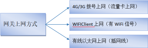 网络---可选WIFI网络、3/4G网络(需要在网关通电前插入手机SIM卡,默认已开启3/4G网络)、WAN外网。