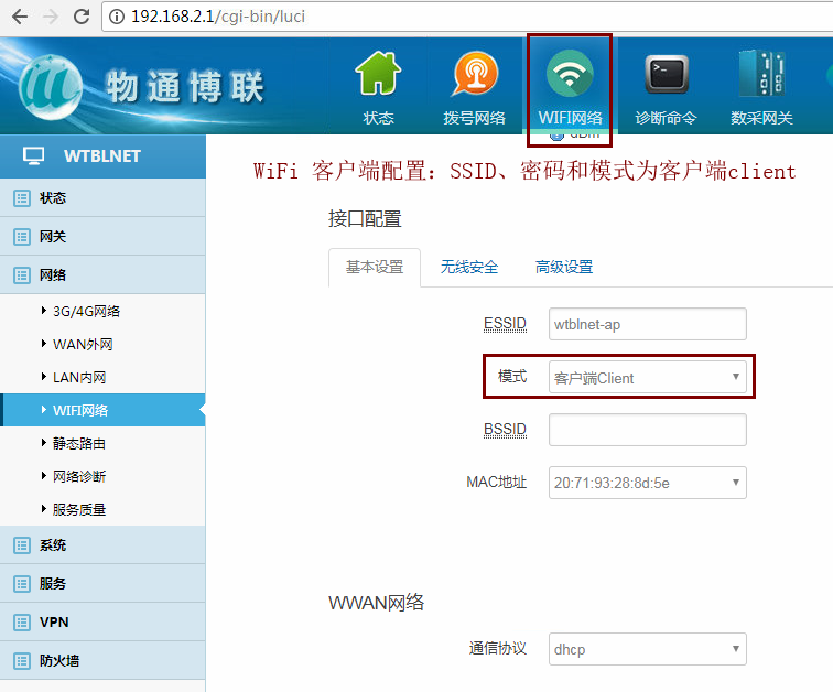 2、WIFI上网配置