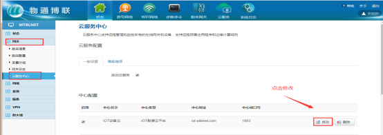 中心类型选择OneNET IOT平台,”OneNET ProductID”和”OneNET AccessKey”要分别与平台上的“产品ID”、“access_key”一致。