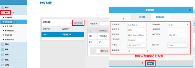 根据CNC设备情况及信息配置后保存。
