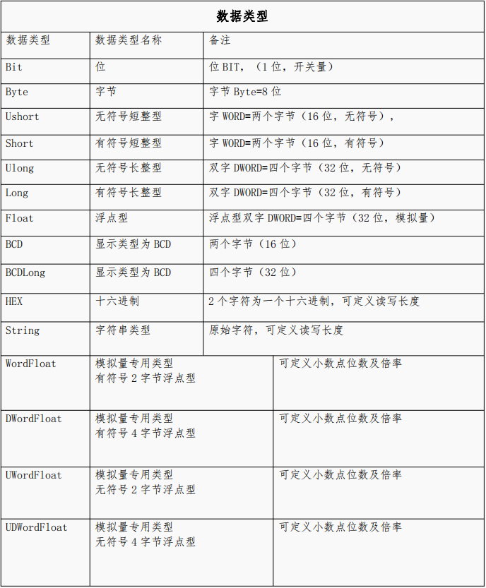 下载中心 视频中心 常见问题 售后服务 工业网关 设备快线 数据云平台 联网设备 问答百科 网关支持采集的数据类型有哪些? 时间:2022-10-26 09:39:53 点击:5912 关键词:工业网关,数据采集,数据类型 问题:网关支持采集的数据类型有哪些? 回答:网关支持采集的数据类型如下表 : 上一篇:工业智能网关会运行时会自动重启怎么处理? 下一篇: 网关采集modbus协议设备时,寄存器类型和地址如何选择?