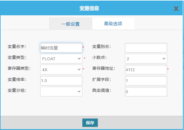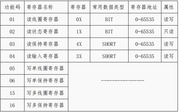 下载中心 视频中心 常见问题 售后服务 工业网关 设备快线 数据云平台 联网设备 问答百科 网关采集modbus协议设备时,寄存器类型和地址如何选择? 时间:2022-10-26 09:39:53 点击:7301 关键词:工业网关,数据采集,modbus,寄存器 问题:网关采集modbus协议设备时,寄存器类型和地址如何选择? 回答: (1)ModBus 功能码与网关寄存器类型对应关系 (2)偏移地址 以仪器仪表为例,Decimal为十进制地址,Hex为十六进制地址 网关仅支持十进制的偏移地址,十六进制需转换十进制 (2)采集演示 如设备支持modbus 协议03功能码,偏移地址表如(2),则网关配置如下 上一篇:网关支持采集的数据类型有哪些? 下一篇: 网关需要将数据上报到long8龙8国际云平台需要哪些配置?