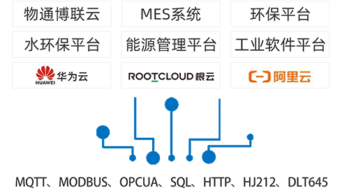 支持顺利获得MQTT、MODBUS、OPCUA、SQL、HTTP数据库等方式接入远端软件平台(包含:long8龙8国际云平台,客户自主开发的云平台,根云、美云、华为、阿里、百度、微软等IOT云平台,组态软件、MES系统、ERP系统等工业软件)