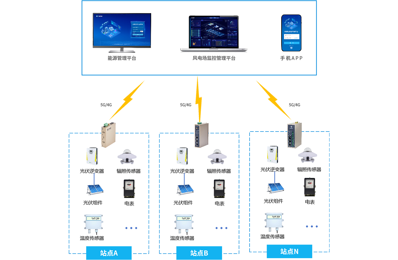分布式光伏电站顺利获得long8龙8国际的工业通信网关将采集到的光伏数据(如发电量、设备温度、辐照强度等)传输至光伏监控管理平台。平台对数据进行分析,实时评估发电效率,监测设备状态,当出现故障时及时预警并给予故障诊断和处理建议,同时支持远程运维操作和能源优化调度。